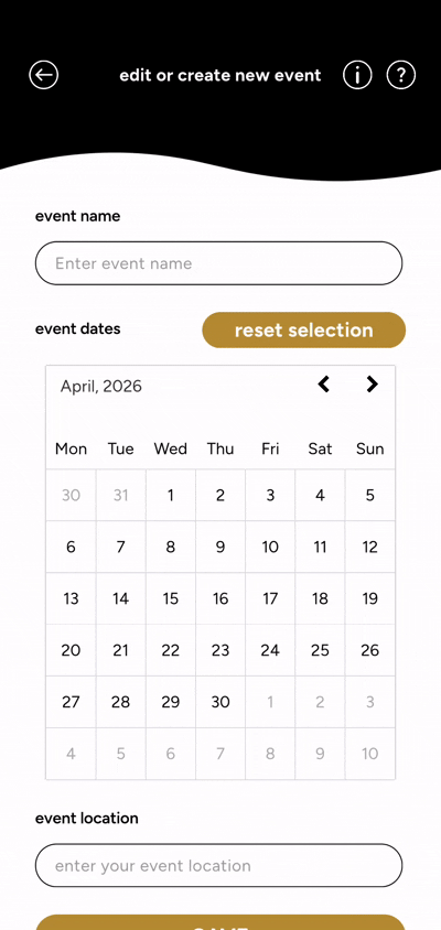 In addition to the lead. It is also important for user to know which event they found the lead in. User can create an event and choose the date by interacting with a calendar, edit the name of the event and choose a location. They can also archive, delete and read the event as well.