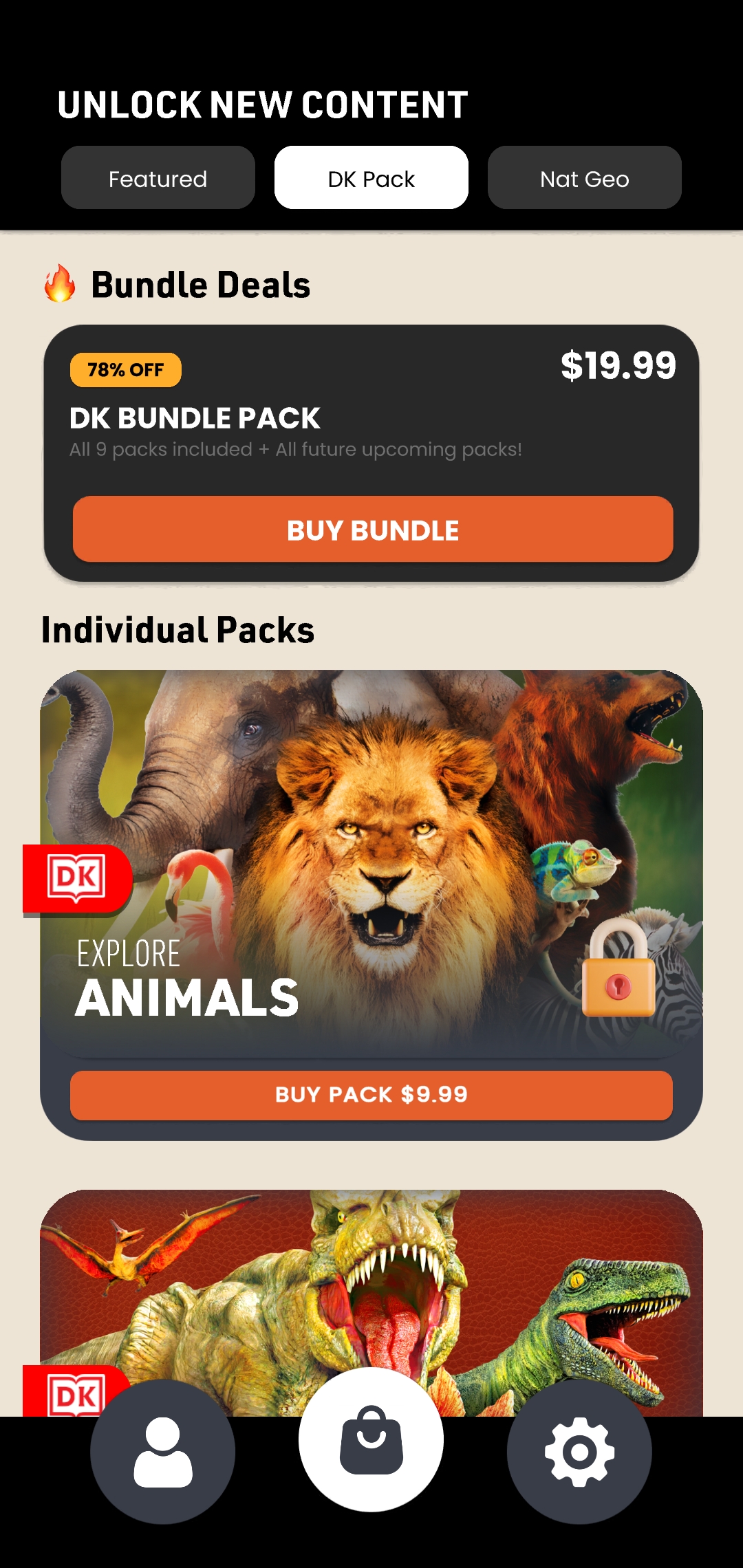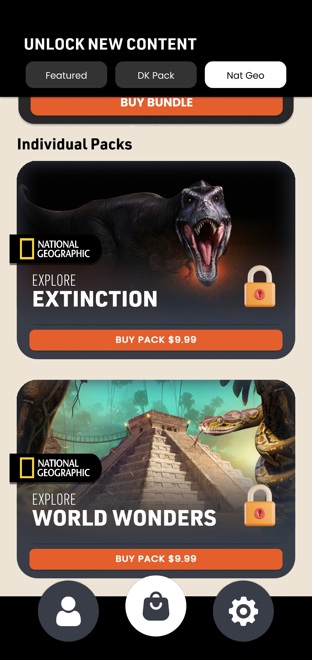 Then I set up tabs so users can go between All Packs, DK Packs, and National Geographic Packs. Below shows the National Geographic tab with its tabs.
