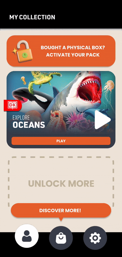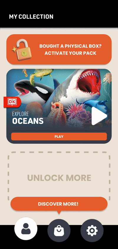 When the user purchases and owns the pack, they can select the pack to open in AR "scanning" mode or in Virtual mode if they don't have the book with them. They can also decide to choose goggle mode or handheld mode.