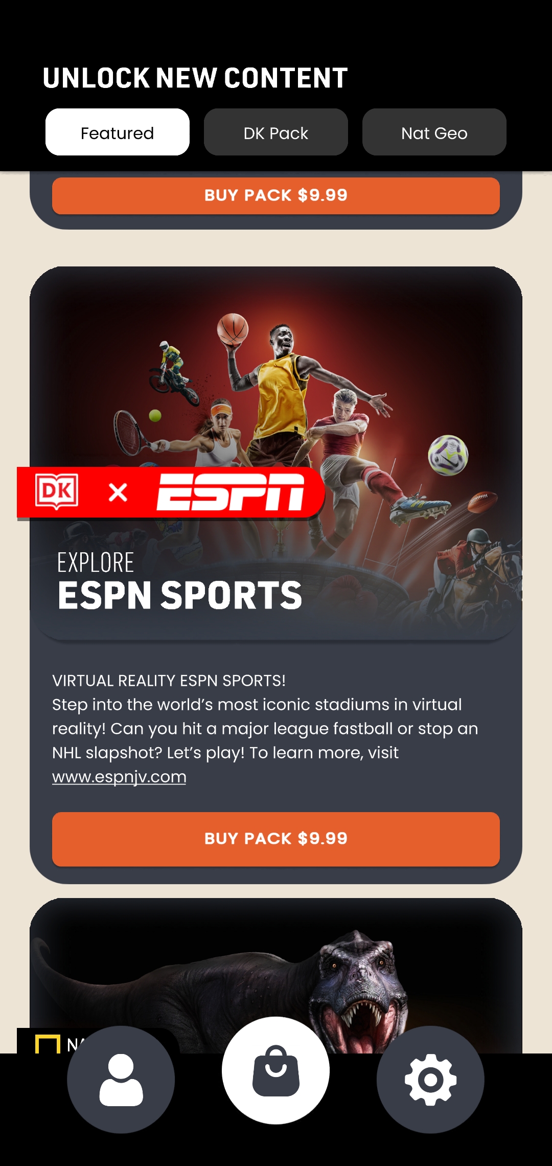 Before I joined, each DK pack was their own app. I helped create a system so that we could centralize an app for all DK, ESPN, and National Geographic apps. Using Addressables to download 360 videos. Using Firebase for login, analytics, storing user information such as which in-app purchases they bought, or experiences they played.